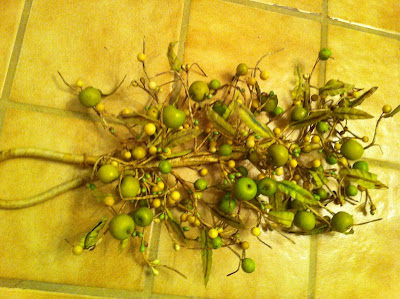This morning while upstairs I looked out from my balcony to see what needed doing in the yard. I noticed the banana trees were damaged from the cold we had, so tomorrow they will come down. I have a large butcher knife from my catering days and it's perfect for chopping the bananas. Each large tree has one or two babies below each stalk and they will replace their momma.