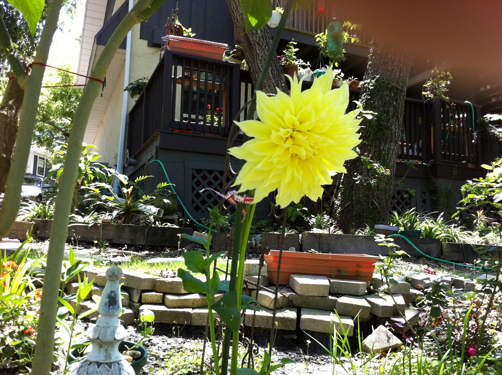 I did manage to secure the long stem to a stake. Said a prayer and hoped for the best. Then the winds started with thunder storms that lasted through out the night. The rain beat down on this really large bloom and thankfully it survived... Today I went out and got the photos.